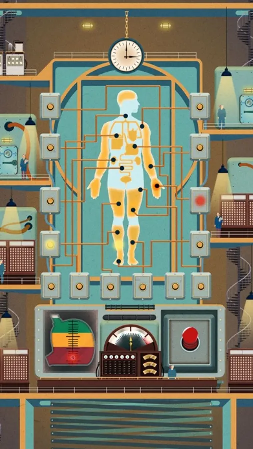 Fritz Kahn, a pioneer of infographics and popular science, came up with easy to understand analogies to enable people to improve their understanding of the human body. By combining old school design with a contemporary influence, Homo Machina delights with its clever dialogue between the absent-minded director at the helm of the body-machine and Josiane, his diligent secretary, encouraging players to put to task the armada of workers to get the incredible factory up and running.