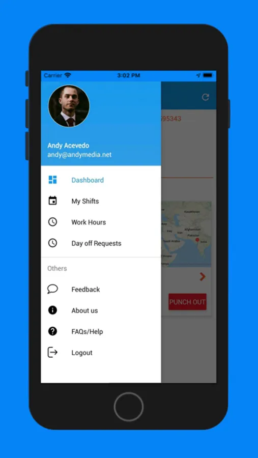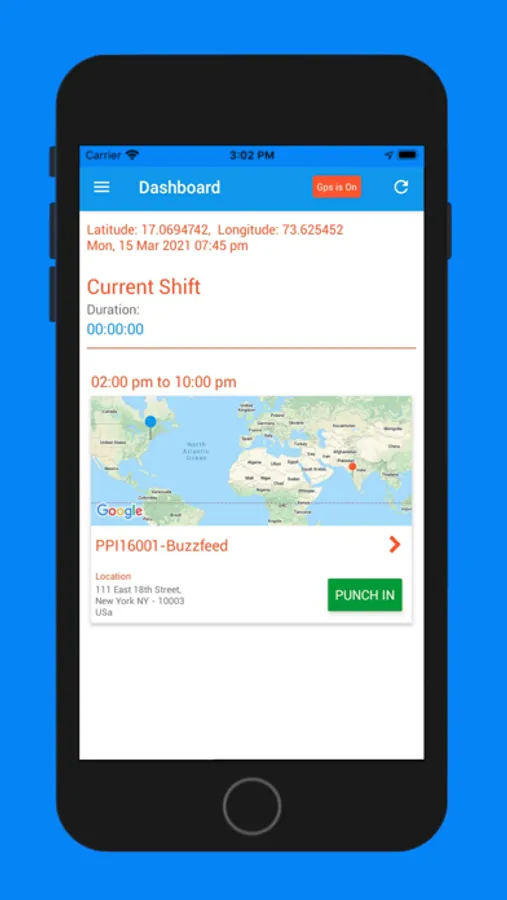The dashboard will show the current shift for that day. It will show those projects on which technician has to work in next 2 hours. It will show all shift details like Project name, shift start and end time, work-location and Punch-In/Out button beside address detail. The technician will be able to do punch only in following conditions: