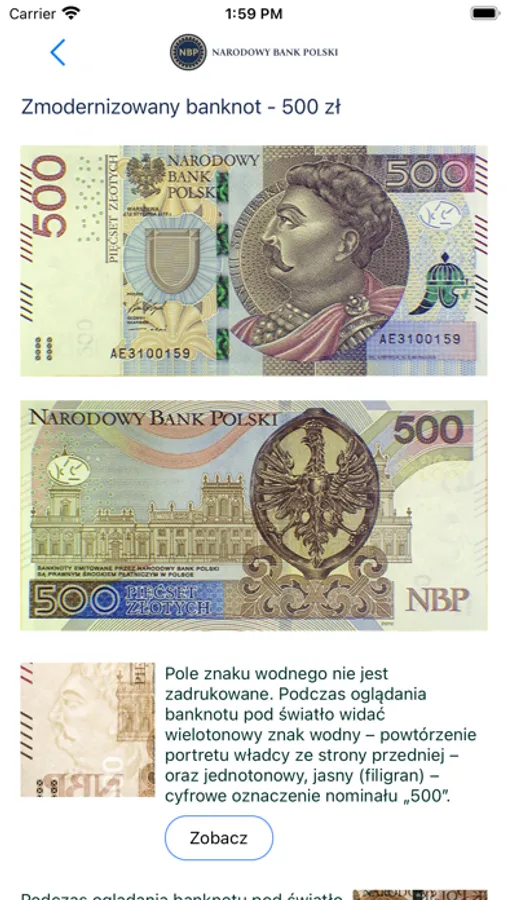 Nowością w aplikacji „Moje NBP” jest moduł Rozszerzonej Rzeczywistości, czyli AR (augmented reality). Technologia ta umożliwia oglądanie np. monet i banknotów kolekcjonerskich oraz innych grafik NBP w formacie 3D.