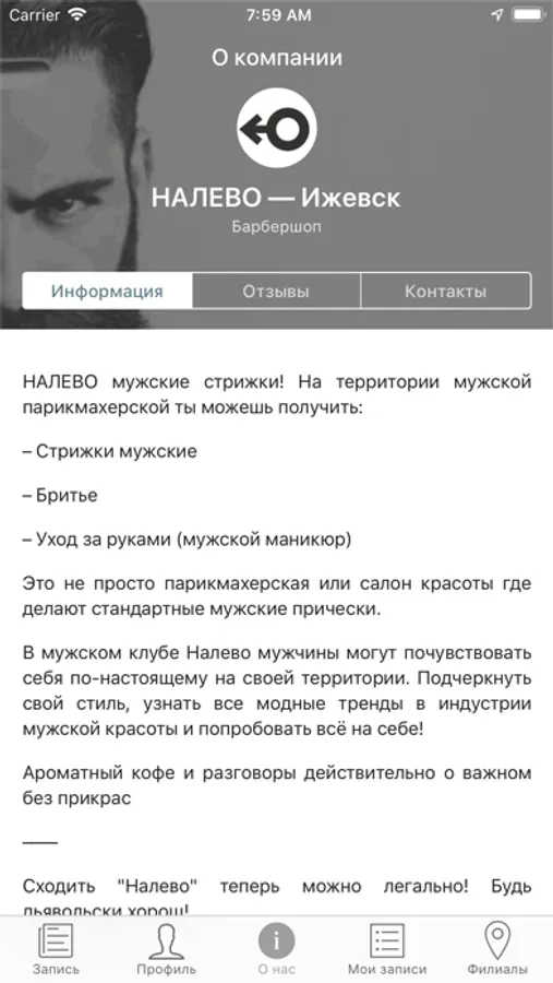 Сеть мужских парикмахерских НАЛЕВО. Почувствуй себя по-настоящему на своей территории!