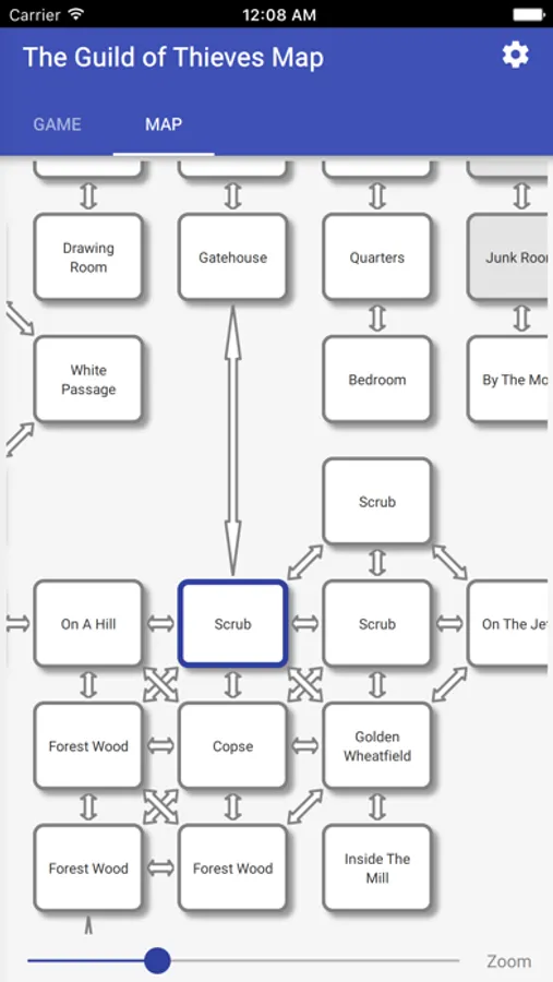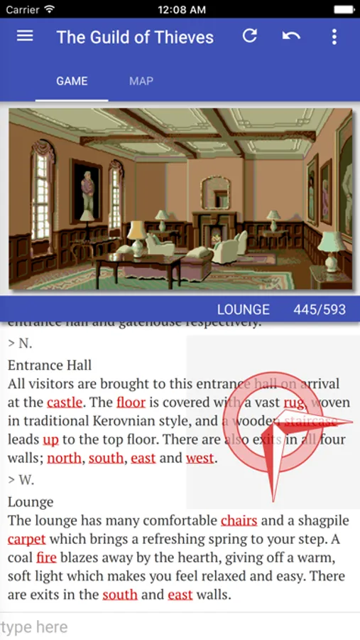 No need to draw out the map, we do it for you. As you explore the game, the map page will expand. Tap any previous room on the map to "fast-goto" that location.
