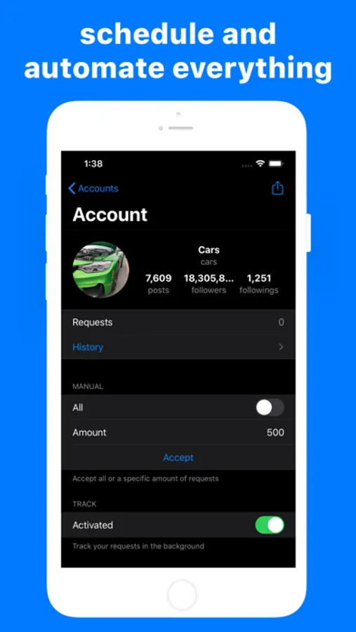 Accept thousands of follow requests per minute, without spending hours of your time manually accepting one by one. Additionally, use the included follow request scanner to track the number of incoming requests beyond the normal limit of 1000.