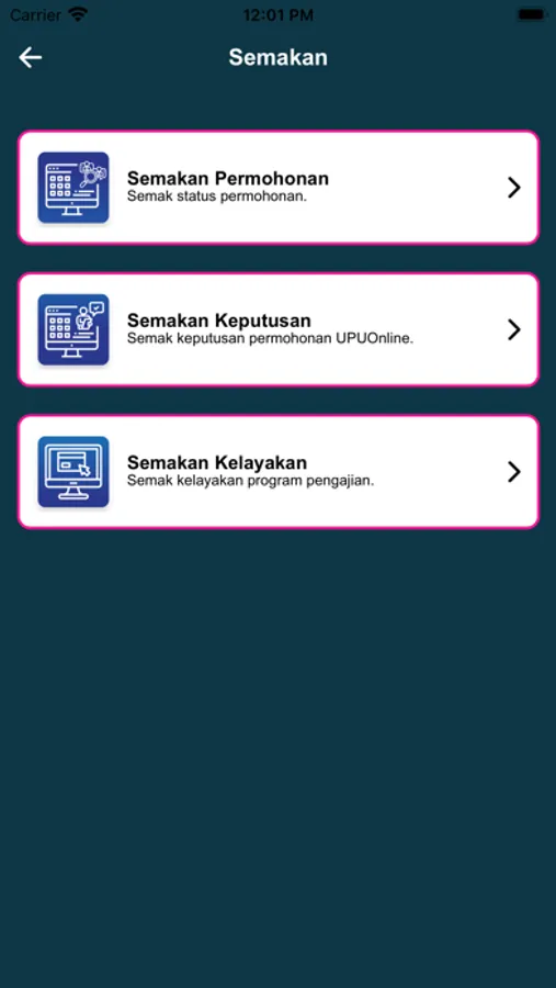 UPUPocket is a mobile application developed by the Management of Student Admission Division, Department of Higher Education, Ministry of Higher Education which aims to assist Malaysians, especially applicants and parents to obtain services and references in admission of students to Public Universities, Polytechnics, Community Colleges and Public Skills Training Institutions