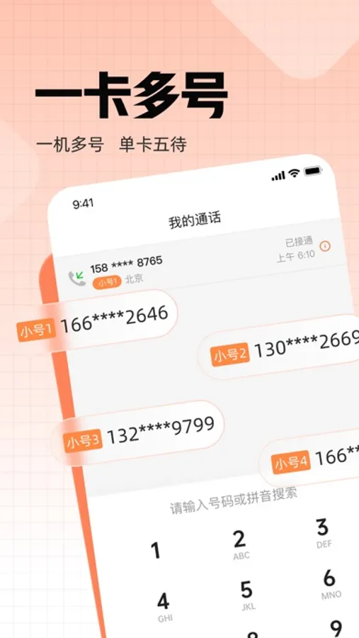 联通小号APP提供用户线上注册渠道,并实现小号的主被叫和收发短信功能。
