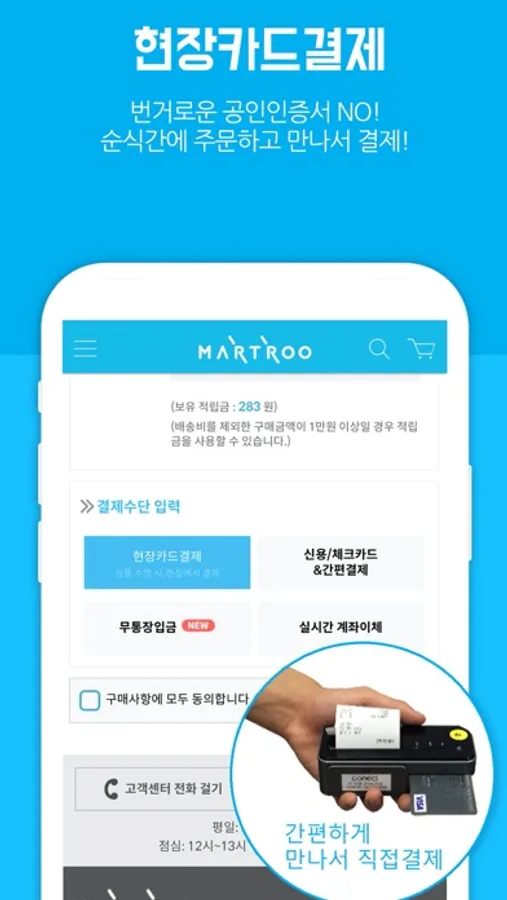 복잡한 절차 없이 간편하게 만나서 카드로 계산하세요.