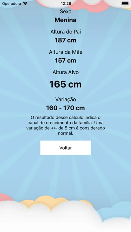 Com dados de altura do pai, da mãe e do sexo da criança é possível realizar o calculo de estatura alvo que a criança deve atingir na idade adulta.