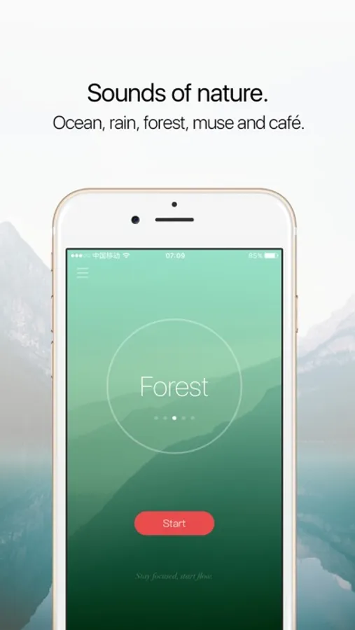 • Five natural scenarios: ocean, rain, forest, meditation and coffee.