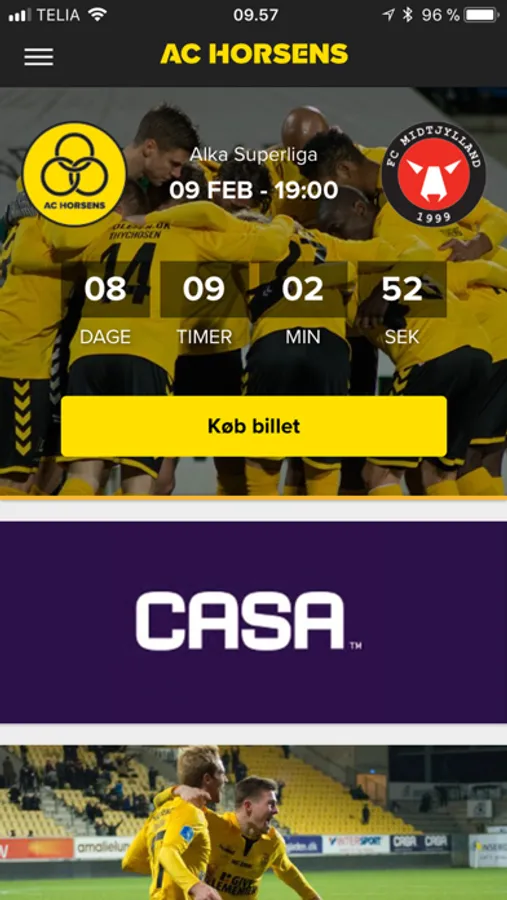 Når du køber billetter eller sæsonkort, bliver de hentet ind i app’en og kan bruges ved indgang til Casa Arena. Det kræver kun, at du bruger samme login (email) i app’en og billetsystemet