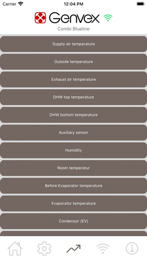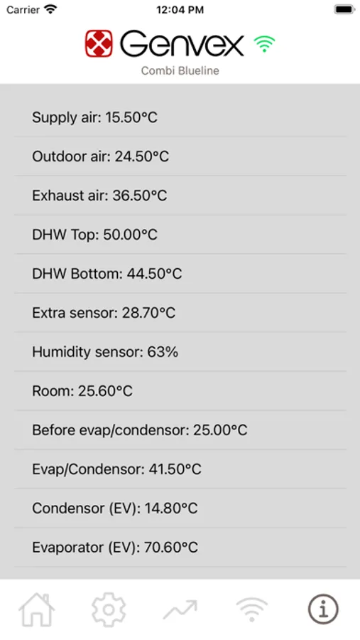 The following features are available via Genvex Connect