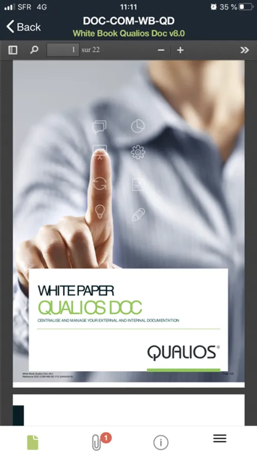 To be able to take full benefit of this mobile application, it must be linked to your Qualios DOC and/or Qualios Manager EDM software solution for the management of your information system and QMS.