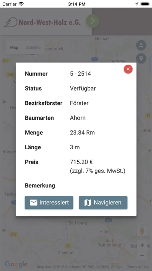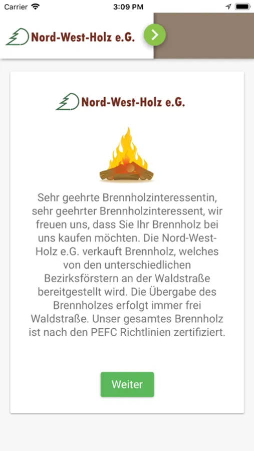 Die Nord-West-Holz e.G. verkauft Holz, welches von den unterschiedlichen Bezirksförstern an der Waldstraße bereitgestellt wird. Die Übernahme des Brennholzes erfolgt immer frei Waldstraße. Das gesamte Brennholz ist nach den PEFC Richtlinien zertifiziert. In dieser App haben sie die Möglichkeit die verschiedenen Holzpartien auf einer Karte einzusehen, auszuwählen und bei Interesse den zuständigen Bezirksförster zu kontaktieren.