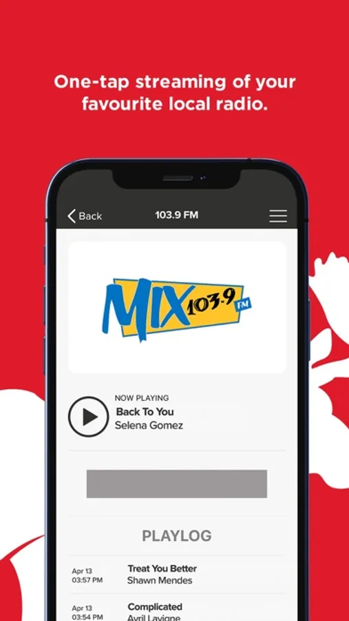 - Streaming: Listen to your favourite local radio stations - CHAB, Country 100, and MIX 103 - on-the-go, and look up recently played songs