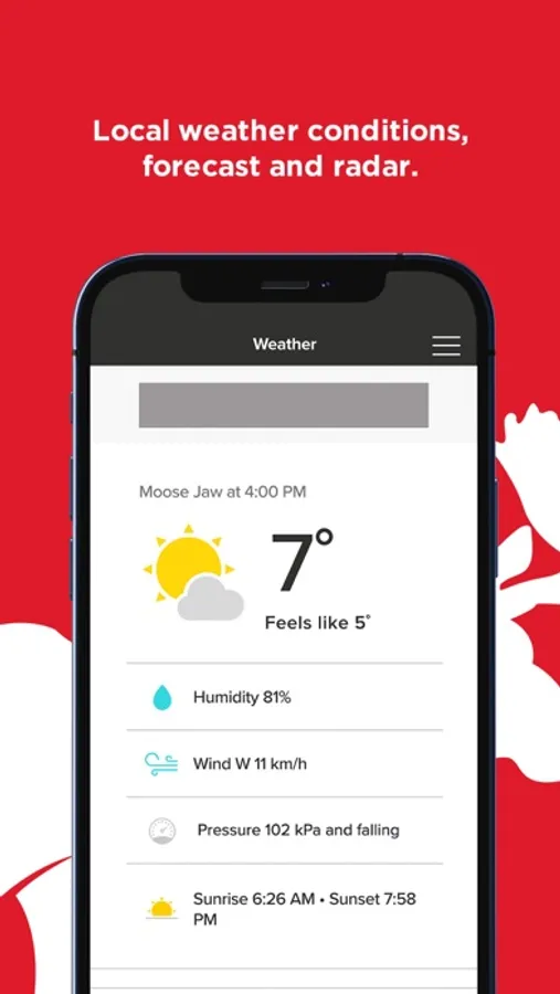 - Live local weather conditions, including hourly and 7-day forecasts and radar maps from Environment Canada