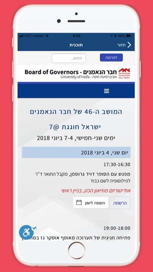 האפליקציה מיועדת לחברי חבר הנאמנים וידידי האוניברסיטה, המעוניינים במידע על תוכנית המושב, מקבלי ד"ר כבוד, ואירועים נוספים.