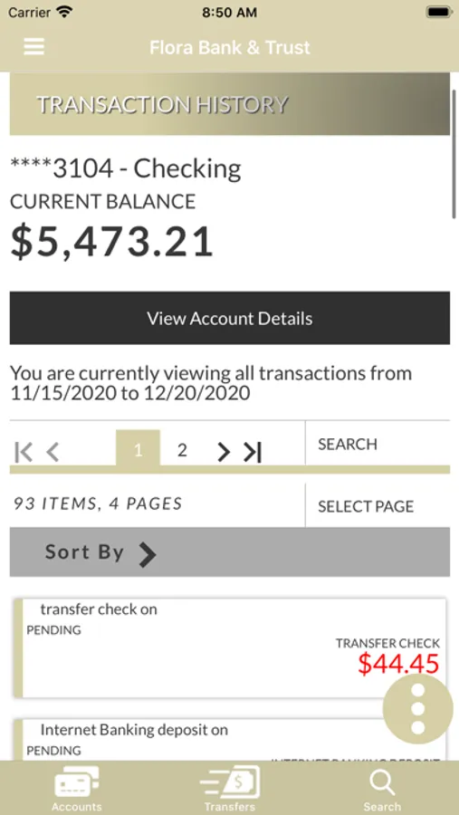 - Check your latest account balance and search recent transactions by date, amount, our check number.