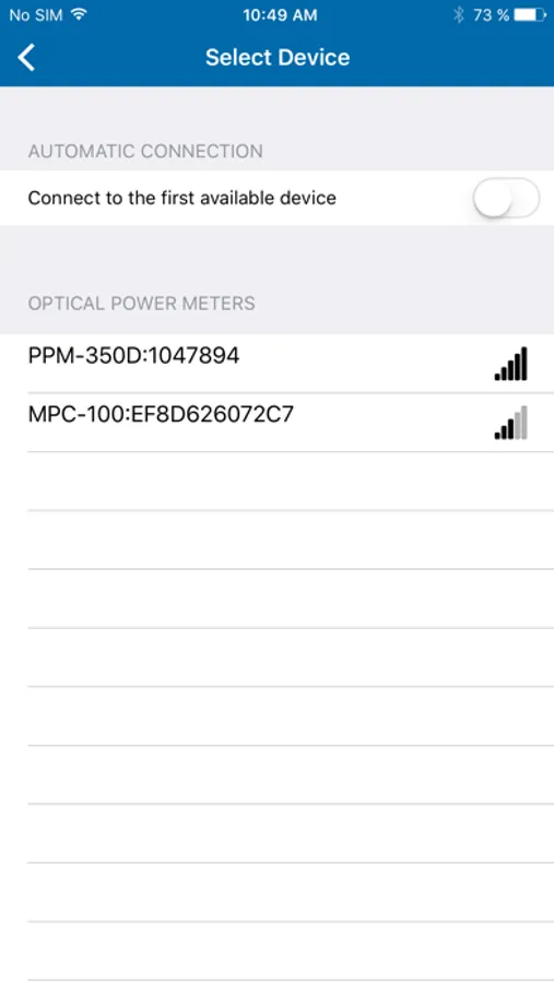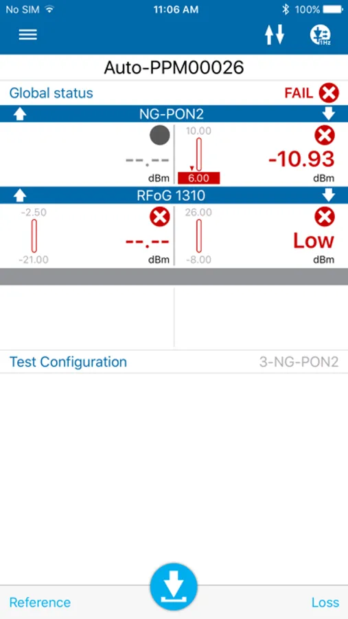 The EXFO OPM [Optical Power Meter] application can connect over Bluetooth™ to both EXFO’s PON Power meters (PPM-350D), and power checkers (MPC-100 series). When connected, the app can display live measurements and store measurements, along with the following advanced/additional features: