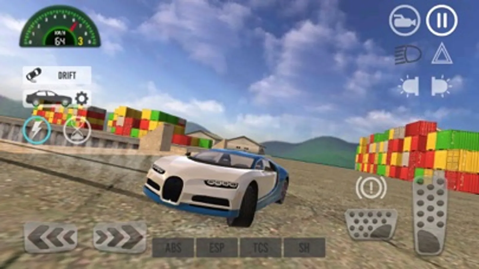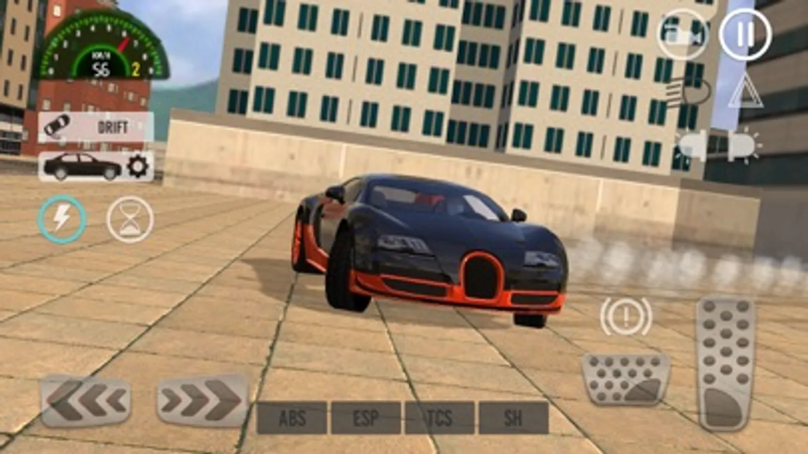 Try different driving modes, for each of the cars, such as simulator, racing, arcade, drift or fun drive mode.You can turn on or off the ABS (Anti-lock Braking System), ESP (Electronic Stability Program), TCS (Traction Control System) and SH (Steering Helper).