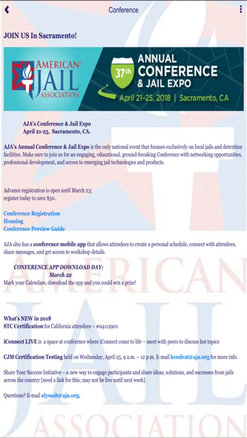The American Jail Association’s new mobile app gives you ease of access and keeps your finger on the pulse of the corrections community.