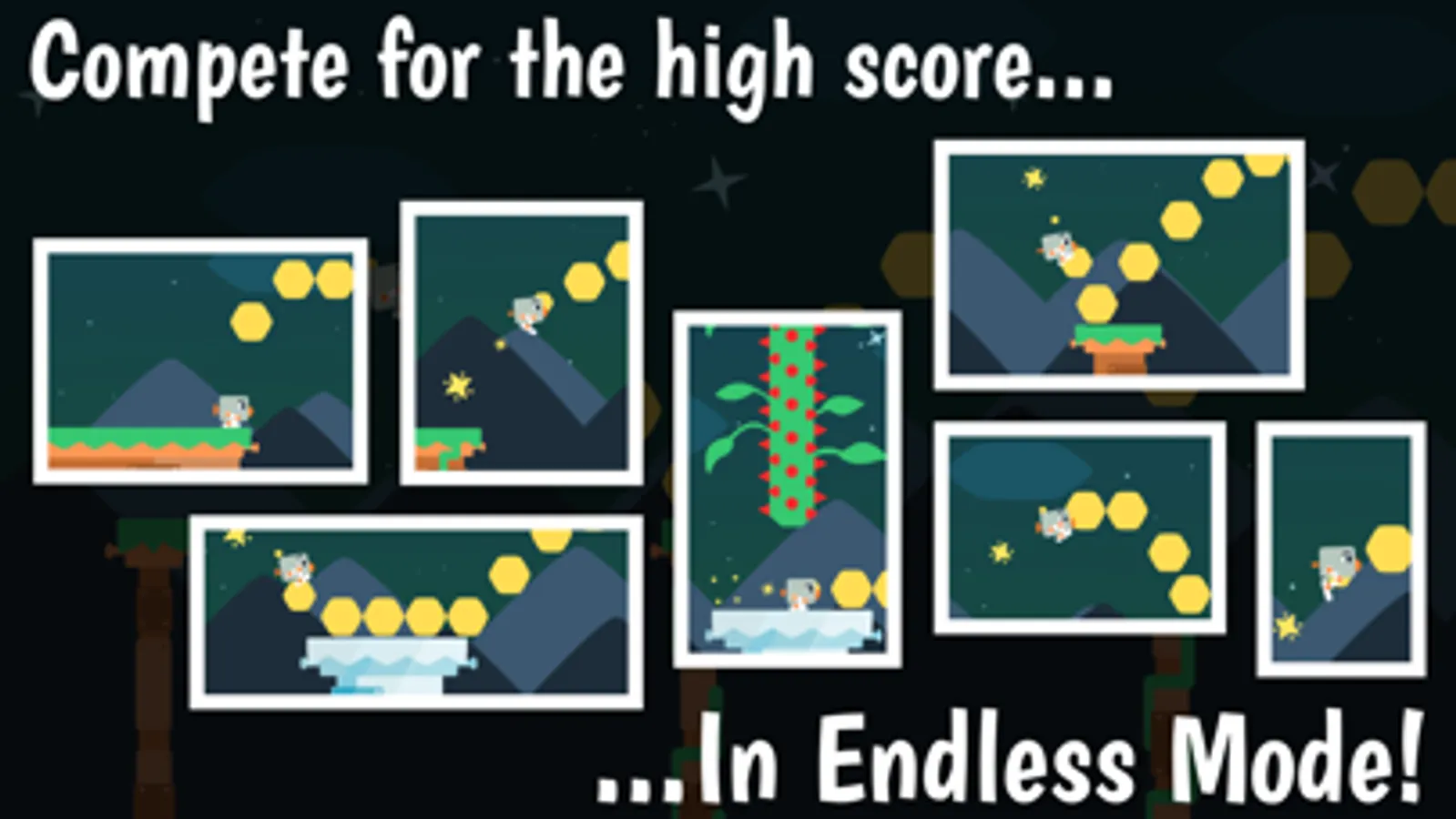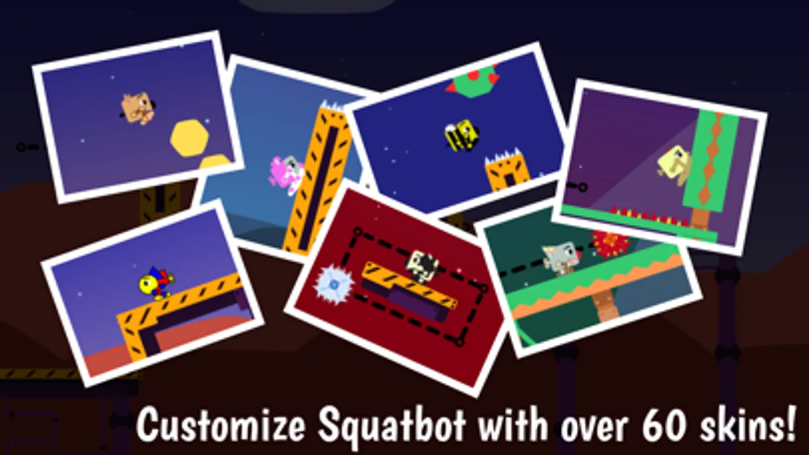 In Squatbot, there are no onscreen controls, simply tap left to jump left or tap right to jump right. Build and maintain your momentum as you race through challenging levels.