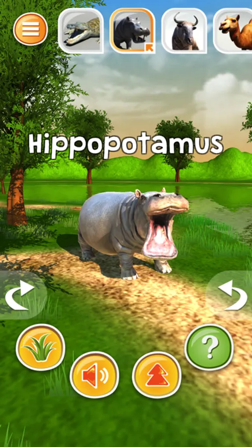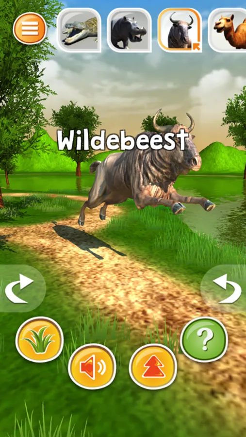 Select your character from 5 different safari animals including Crocodile, Hippopotamus, Wildebeest, Camel, and Buffalo,