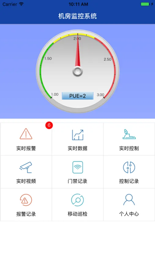 动力环境监控系统V6是一款可以对对机房动力环境进行实时监控的app。主要功能包括:实时报警、实时数据、实时控制、实时视频同时还能查看历史报警、门禁记录、控制记录和进行移动巡检。