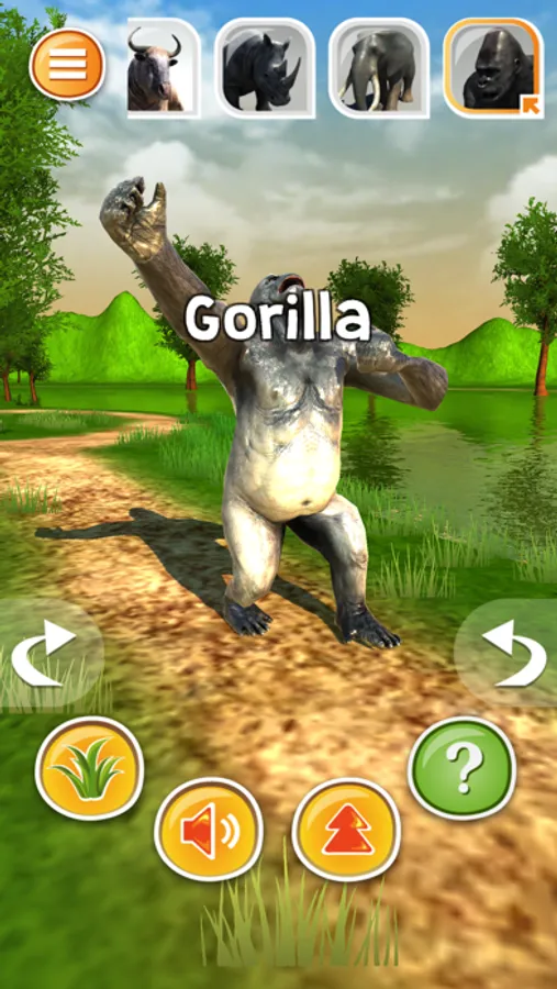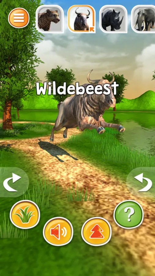 Select your character from 5 different safari animals including Leopard, Wildebeest, Rhinoceros, Elephant, and Gorilla,