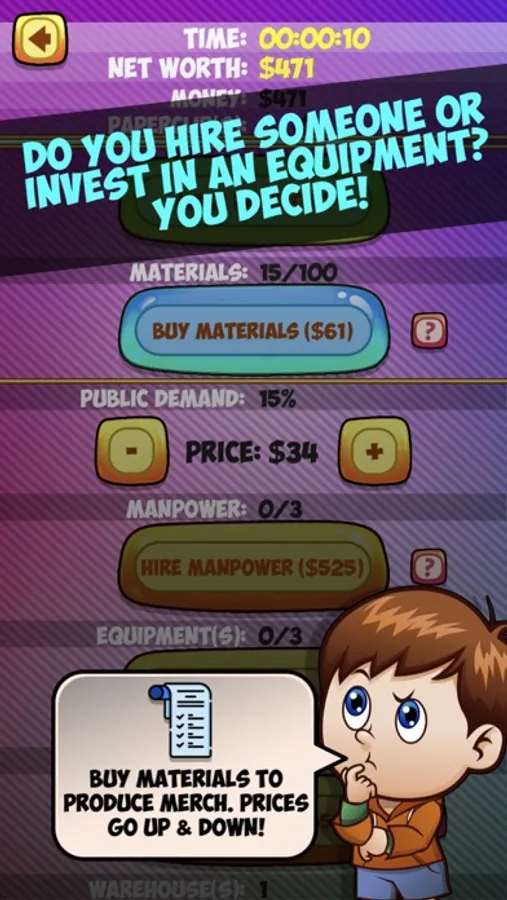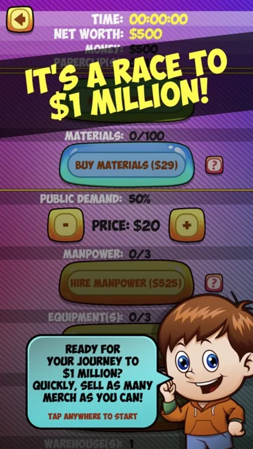 Merch Tycoon puts you in an exciting and fun experience of managing your own business and producing merchandise. It's all about business decisions and economics. The game rewards you for your success and you are always free to fail and restart your game anytime. Feel free to mix and match whatever elements you feel will get you to your goal fast.