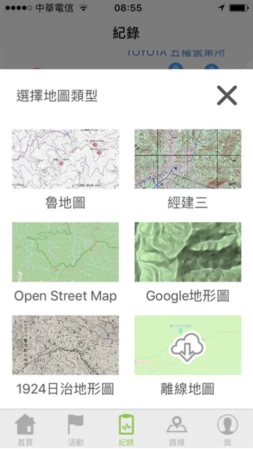 可使用魯地圖、經建三版地圖、Google地形圖、OSM地圖、日治地形圖製作離線地圖,供無網路訊號之離線使用。地圖範圍可直接以軌跡涵蓋範圍、或是自訂範圍下載。