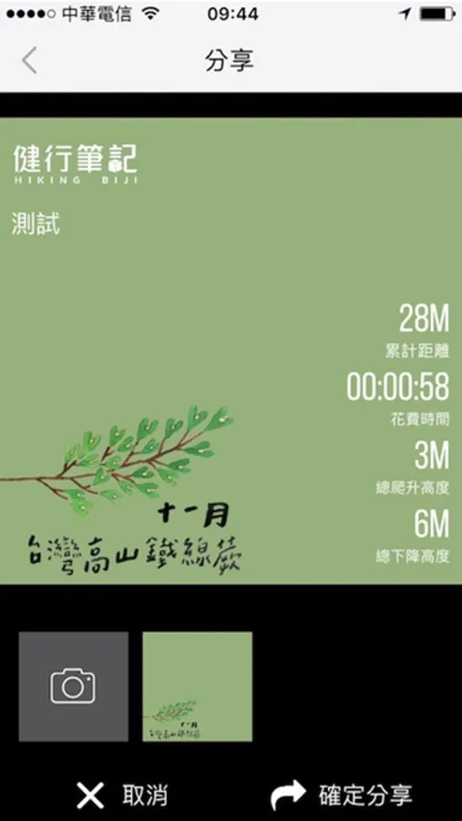 紀錄個人登山健行軌跡紀錄、沿途可打卡、標點與拍照並可搭配照片或每月臺灣特有種植物分享成就