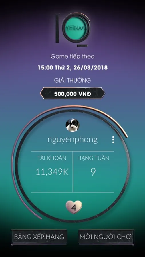 Hiện tại mỗi tuần có 3 game show được trực tiếp vào 1:30 trưa Thứ 3 và Thứ 5 và 20:30 tối thứ 7 hàng tuần. Ban tổ chức có thể tăng hoặc giảm số lượng gameshow tuỳ tình hình thực tế và sẽ thông báo thông qua Ứng dụng vào từng thời điểm. Người chơi có thể tham dự Gameshow mỗi khi Gameshow phát sóng trực tiếp. Nếu vào muộn khi game đã bắt đầu người chơi chỉ có thể xem chứ không thể tham dự chơi. Để tránh tình trạng vào game muộn, người chơi có thể đăng ký dịch vụ “Nhắc tôi trước khi game bắt đầu” – để Ban tổ chức có thể gửi tin nhắn nhắc người chơi.