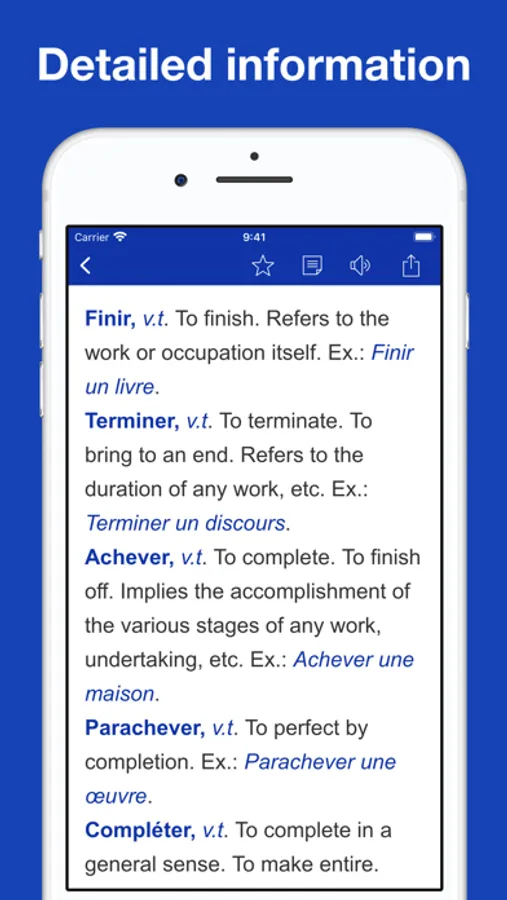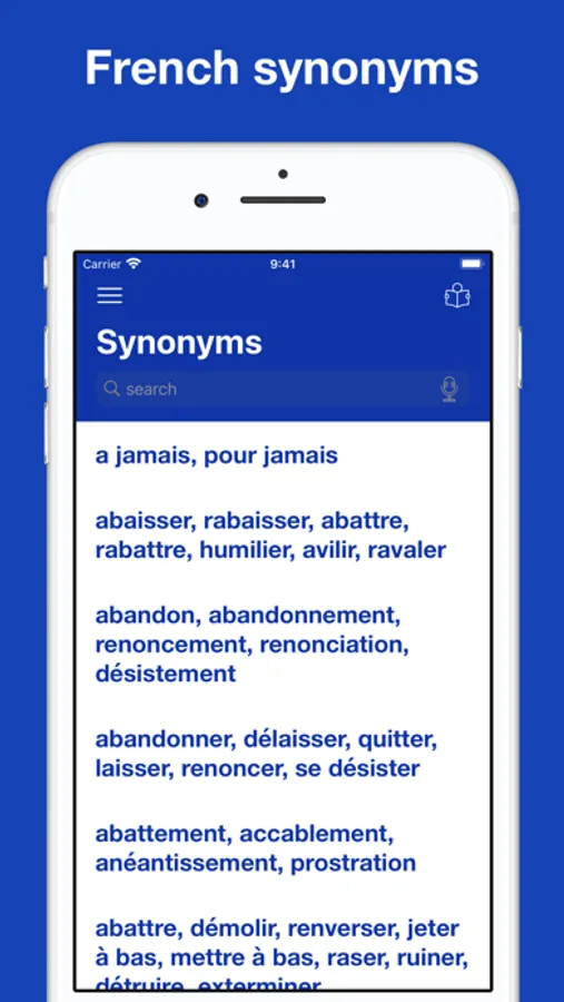 This app will help you to master French Synonyms, understand the difference in meaning and how to use a word in context.