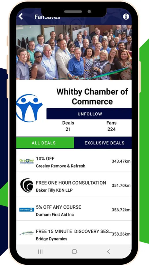 Become a fan of your favourite teams, organizations, Chambers of Commerce, events, colleges, influencers and more to get discounts and deals from their affiliated brands, sponsors and members.