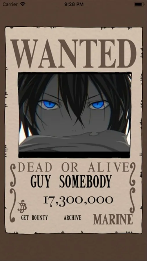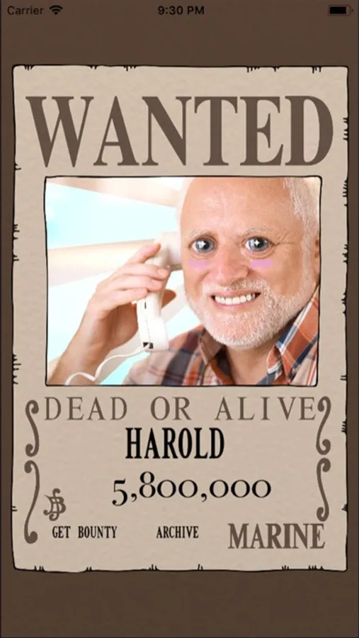 Bounty Maker lets you create a simple wanted poster (for fun, of course!). Simply tap the camera icon and take a photo of a subject of your choosing, and Bounty Maker will frame it within a poster. Next, enter your subject's name underneath the photo. Tap “Get Bounty” and the app will automatically determine the subject's bounty! You can then save to your camera roll to add to your collection.