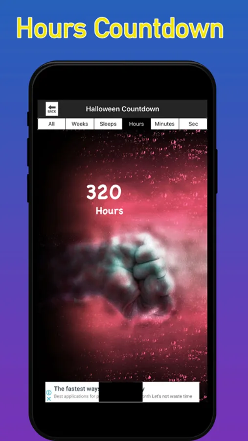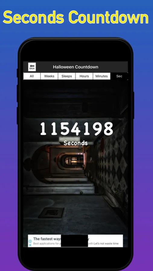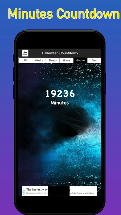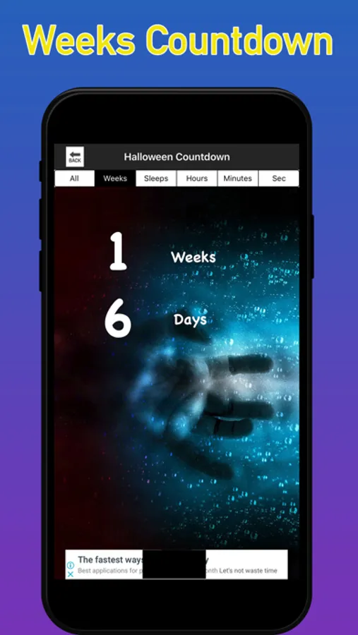 There are Multiple Time Modes including counting down the number of total weeks, nights, hours, minutes or even total seconds until Halloween.