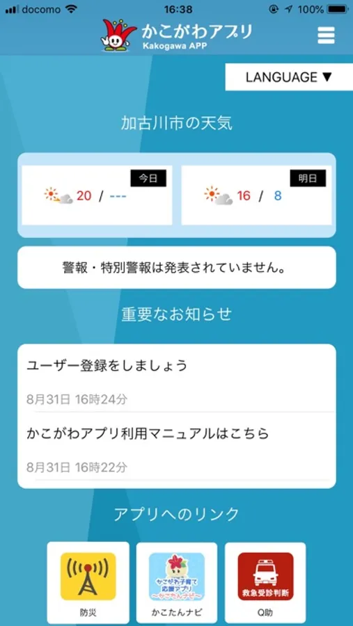 「かこがわアプリ」は、加古川市が提供するアプリケーションや、市民の利便性向上につながる各種情報へリンクするためのアプリケーションで、利用者に分かりやすいインターフェースを提供します。