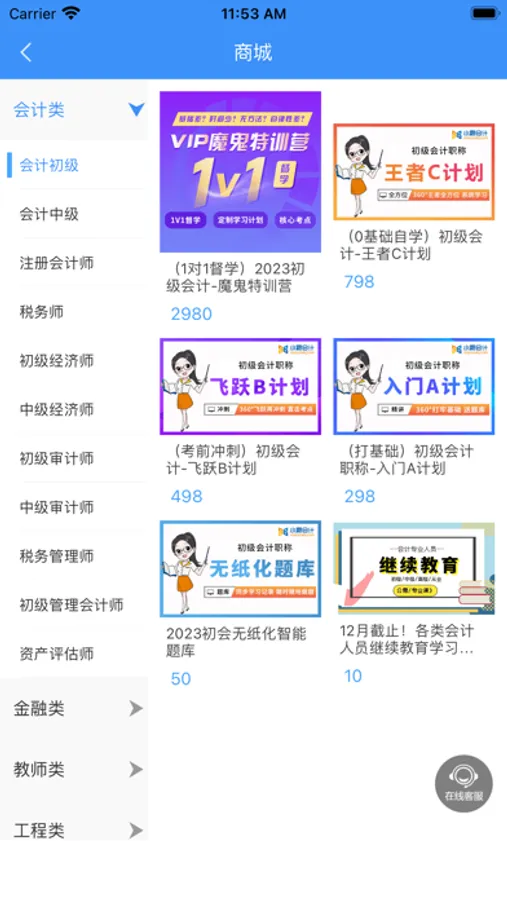 目有:工程项目、财经项目、金融项目、医药项目、公职项目、英语项目、职业