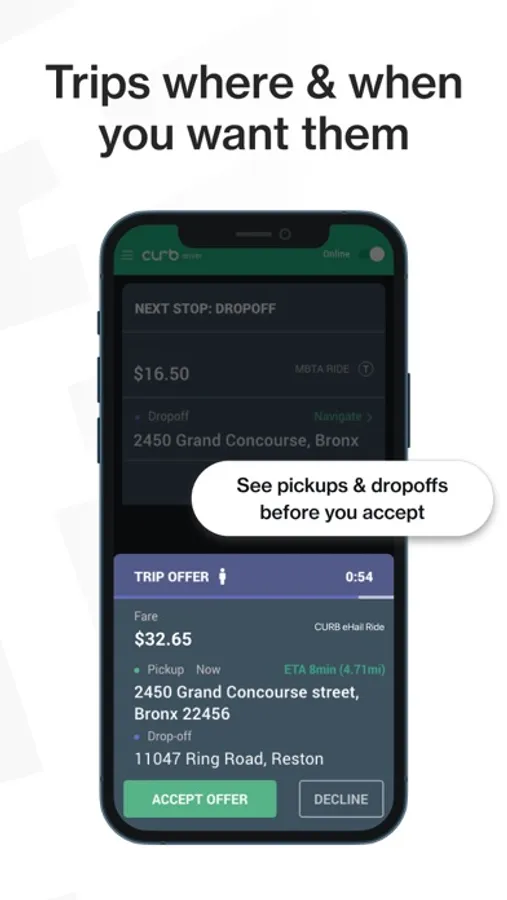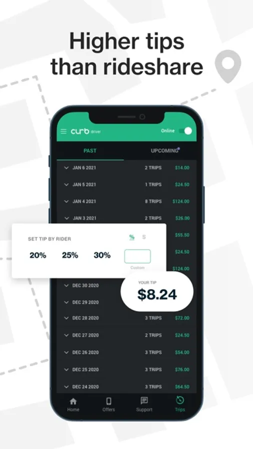 Driving with Curb Driver is an easy way to earn money whenever you want. Unlike other rideshare apps, we never deprioritize you when you’re driving with us. Take trips when and where you want them.