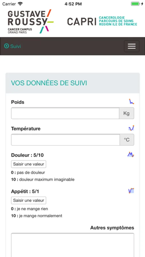 CAPRI est une application réservée aux patients de Gustave Roussy participant à l’étude CAPRI (Cancérologie, Parcours, Région Ile de France). Pour accéder à l’application « CAPRI » vous devrez vous munir de votre identifiant et de votre mot de passe qui vous ont été communiqués par votre infirmière de coordination.