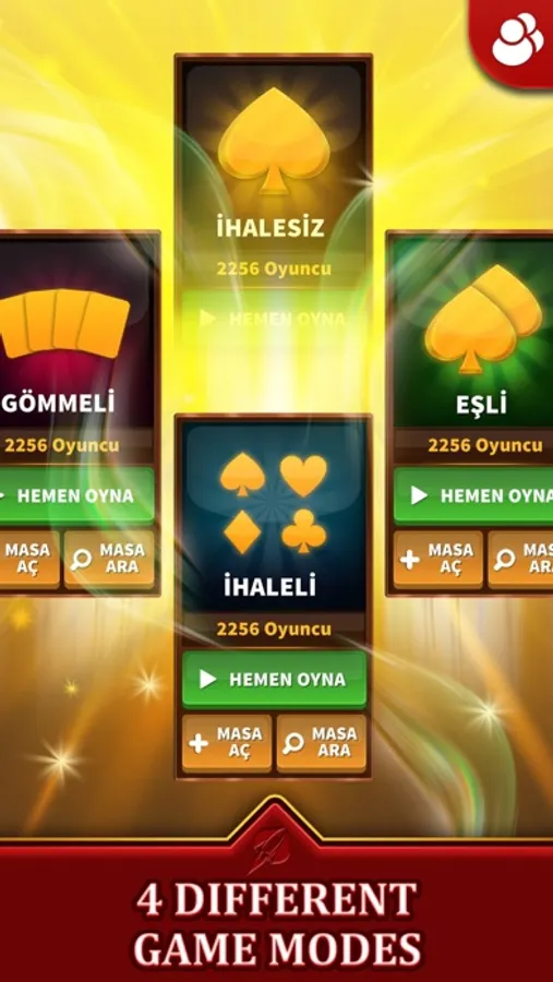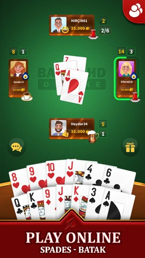 Batak Online (Spades) HD game, which is played by more than 20 million user, is promoted to let the users to play it with another player as a battle. You can chat with other players during the game and send them gifts.