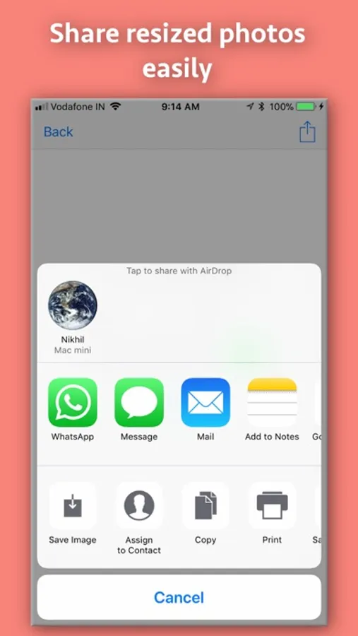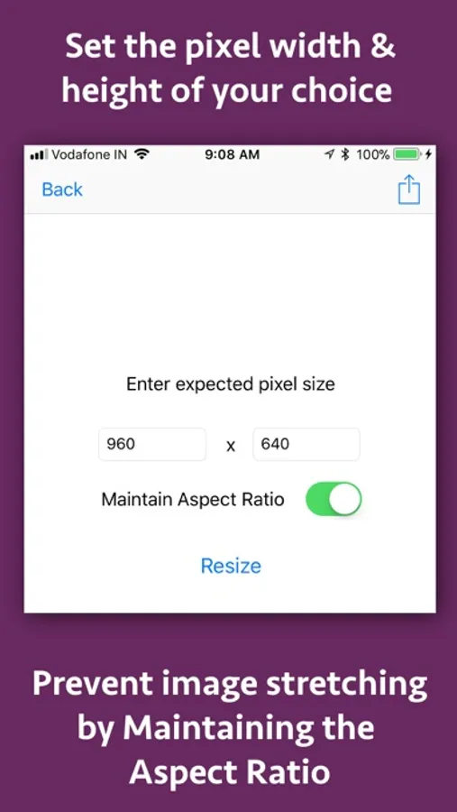 e) Accurate Pixel resizing : The app resizes the photos accurately as per the specified dimensions.