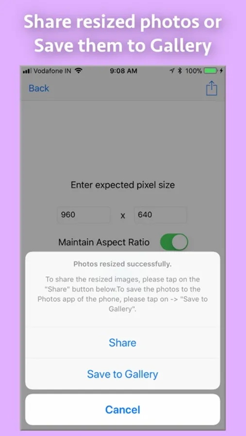 d) Maintaining aspect ratios - If this option is selected, the app will automatically analyse and resize the photos so that these will not appear as distorted or stretched out after resizing operation.