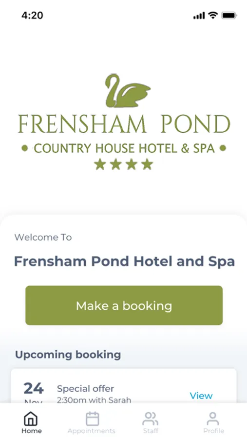 The Frensham Pond Hotel and Spa app makes booking your appointments and managing your loyalty points even easier. You're just a few taps away from feeling good and looking great!