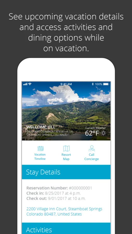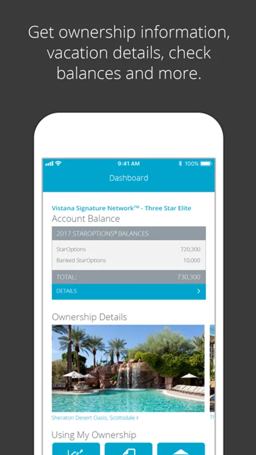 - Access your Dashboard with ownership information, stay details, and more