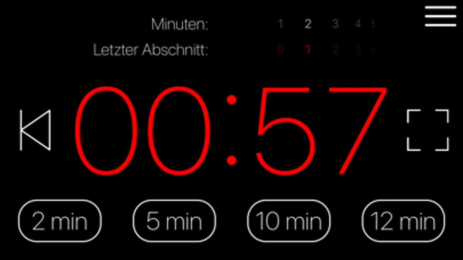 zeitweise (German for „time-wise“) is a handy full screen timer that comes with some simple but elaborate features.