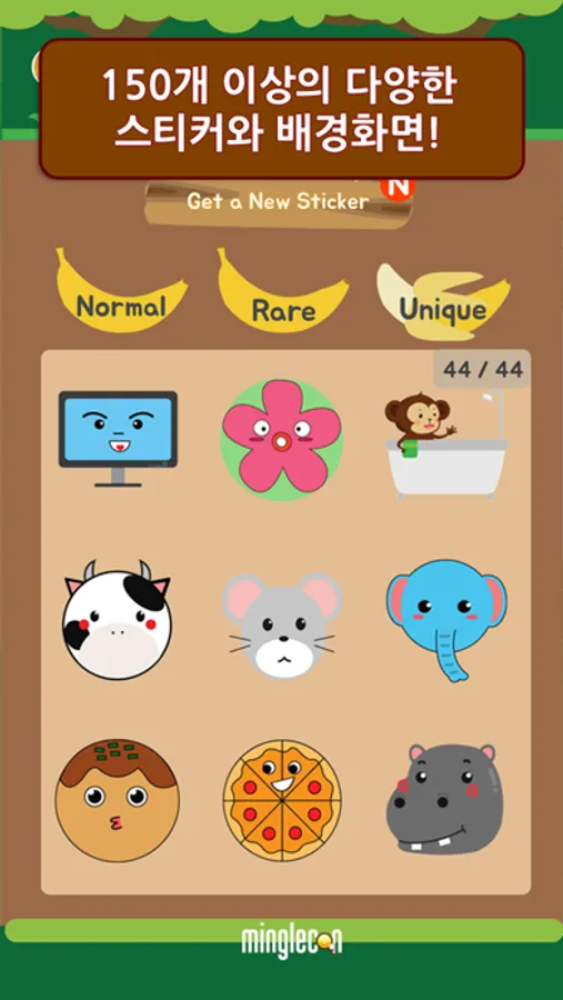 밍글콘 캐릭터와 함께 학습하여 영어 학습에 흥미와 재미를 느낄 수 있도록 구성하였습니다. 아이들이 게임을 통해 학습을 하는 과정에서 아이스크림이 보상으로 주어지며 자신만의 멋지고 다양한 스티커를 모으며 재미있게 활동 할 수 있습니다.