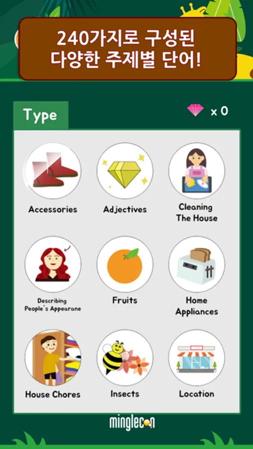 밍글콘! 영어단어240게임과 함께 우리 아이의 읽기와 말하기 능력을 효과적으로 키워주세요.
