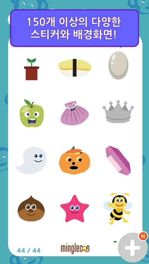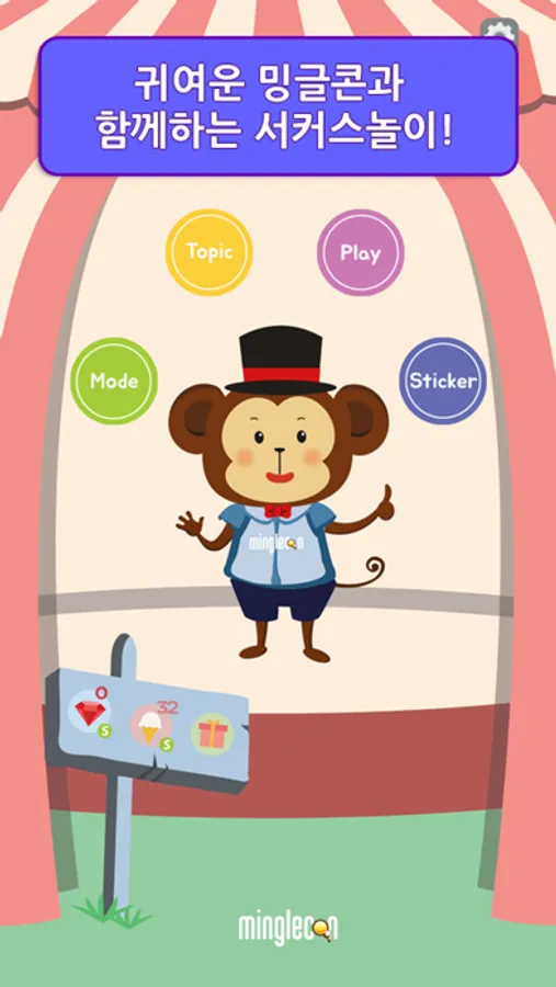 밍글콘 캐릭터와 함께 학습하여 영어 학습에 흥미와 재미를 느낄 수 있도록 구성하였습니다. 아이들이 게임을 통해 학습을 하는 과정에서 아이스크림이 보상으로 주어지며 자신만의 멋지고 다양한 스티커를 모으며 재미있게 활동 할 수 있습니다.
