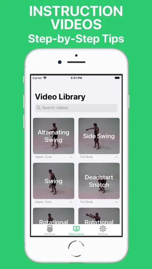 • Video library of DOZENS(!) of kettlebell movements with demonstrations and tips.