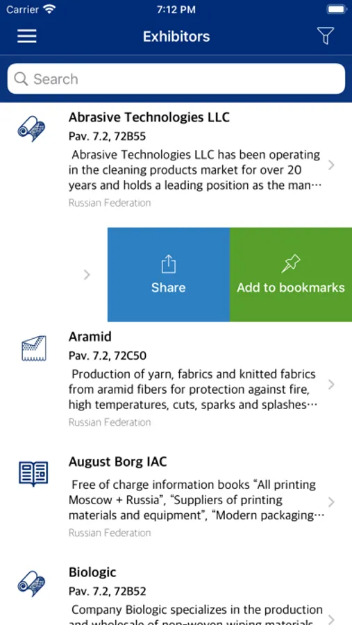 • Favorites tab — to save boothes or events and share it with colleagues.