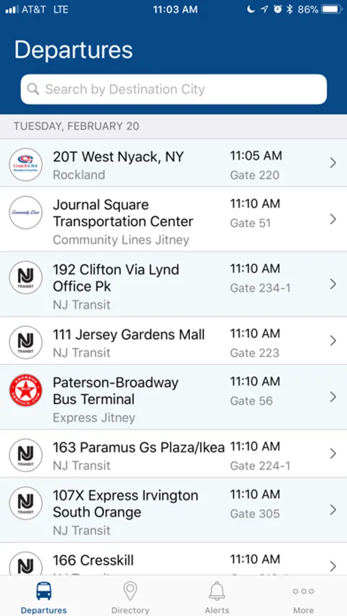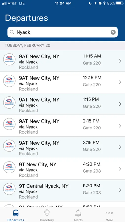 • Get scheduled departure time and gate location for all buses departing from the terminal. Users can search for departures by destination city.